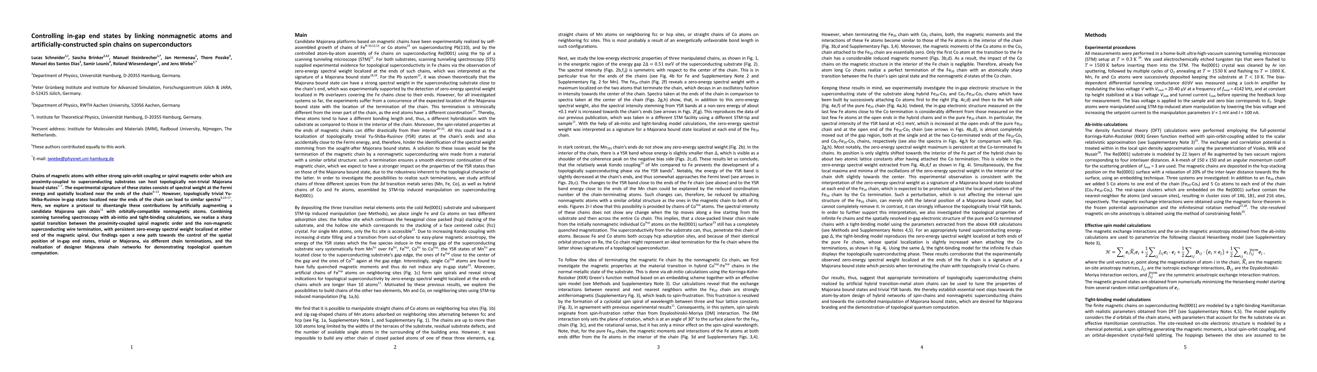Researchers created a method to control in-gap end states on superconductors by linking nonmagnetic atoms to magnetic chains, allowing for the creation of designer Majorana chain networks for quantum computing.