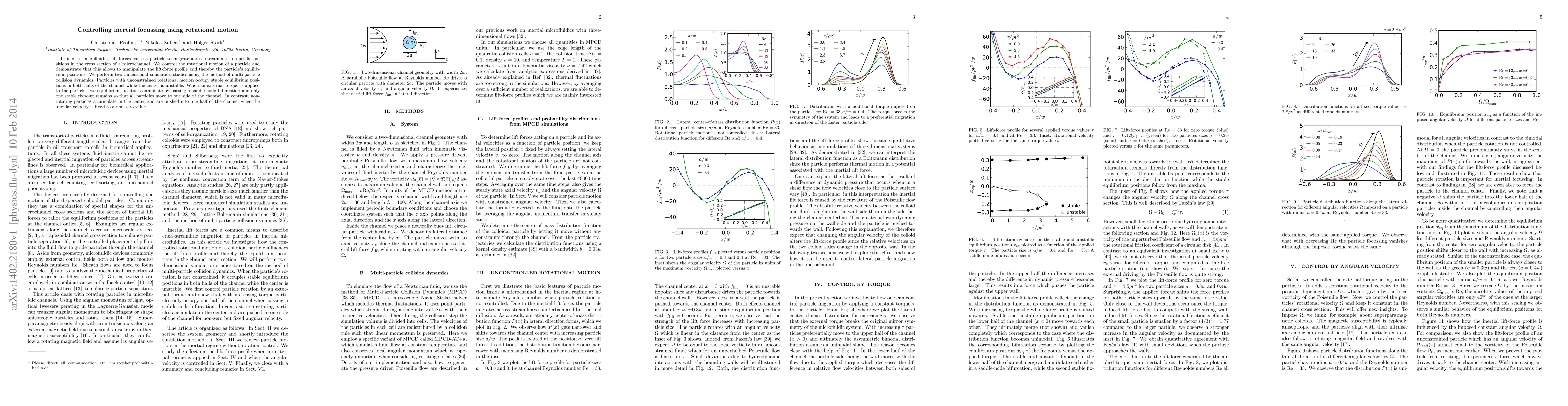 This paper demonstrates how controlling the rotational motion of particles in inertial microfluidics can manipulate lift-force profiles and particle equilibrium positions. By applying external torque, researchers can induce a saddle-node bifurcation, leading to the annihilation of two equilibrium positions and the emergence of a single stable fixpoint, thereby directing all particles to one side of the channel.