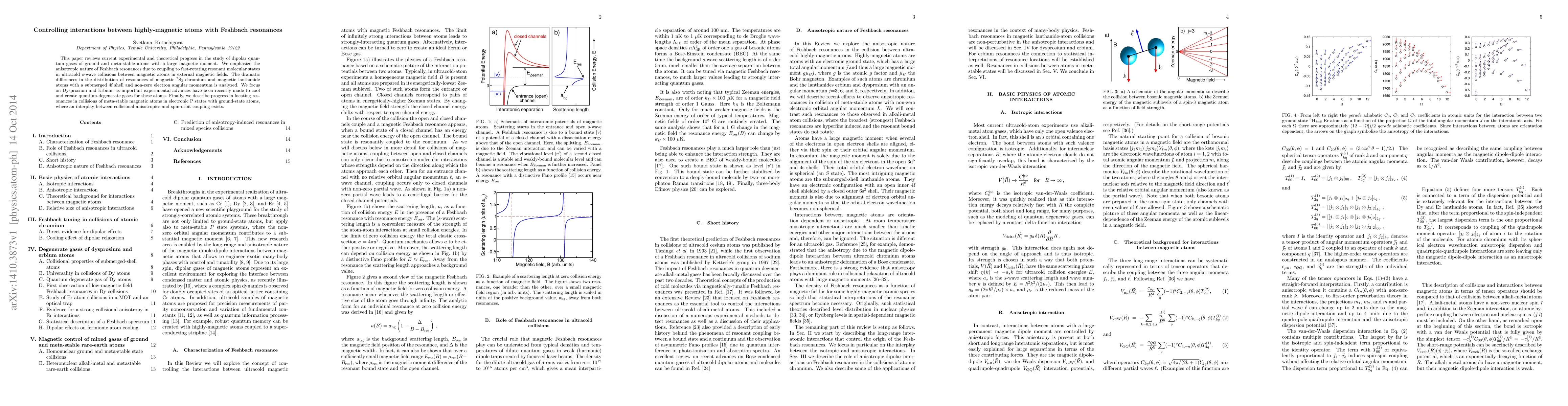 This paper reviews advancements in controlling interactions between highly-magnetic atoms via Feshbach resonances, focusing on the anisotropic nature of resonances due to fast-rotating molecular states in ultracold collisions, with a particular emphasis on chromium and lanthanide atoms like Dysprosium and Erbium. It also discusses recent progress in studying resonances involving meta-stable atoms in P states.