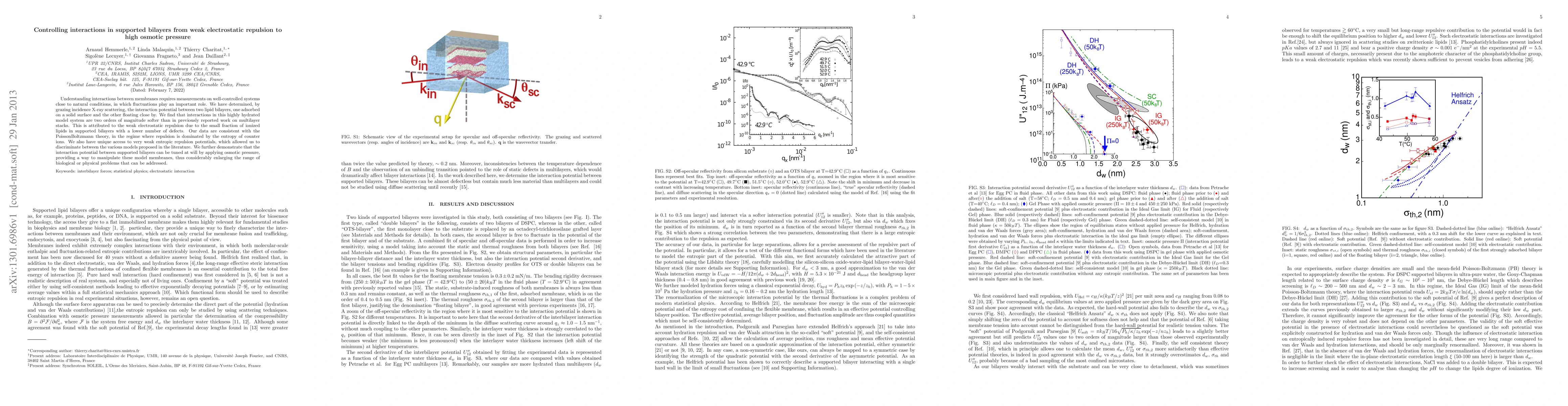 This paper uses grazing incidence X-ray scattering to measure the interaction potential between supported bilayers, finding them significantly softer than multilayer stacks due to weak electrostatic repulsion. The study also demonstrates tunable interaction potentials via osmotic pressure, expanding the applicability of these model membranes.