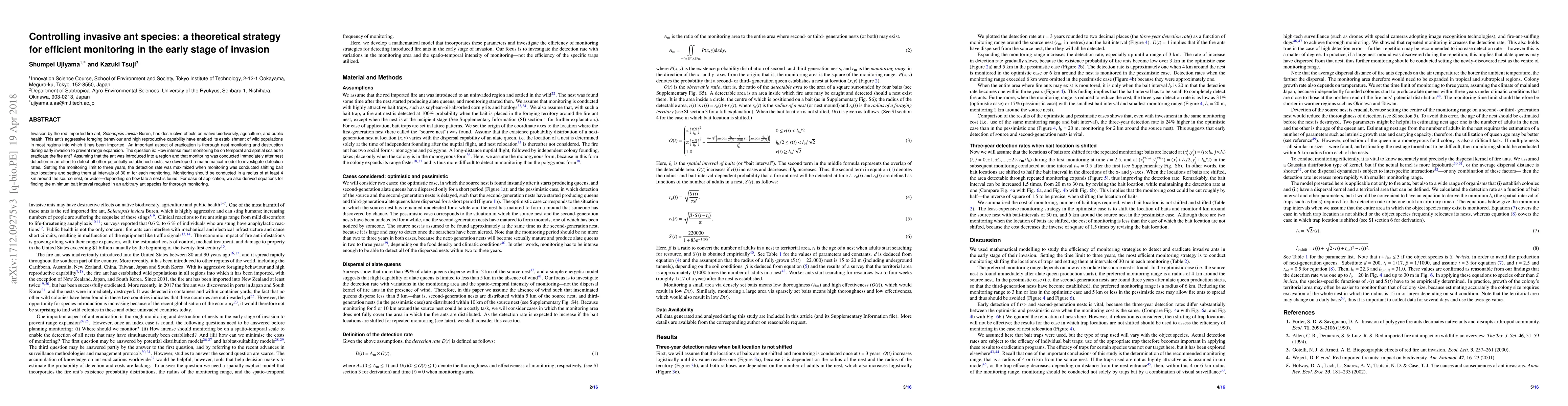 This paper develops a mathematical model to determine optimal monitoring strategies for early detection and eradication of the red imported fire ant. The study finds that shifting bait trap locations at 30 m intervals within a 4 km radius around the initial nest maximizes detection rates, with adjustments based on the timing of nest discovery.