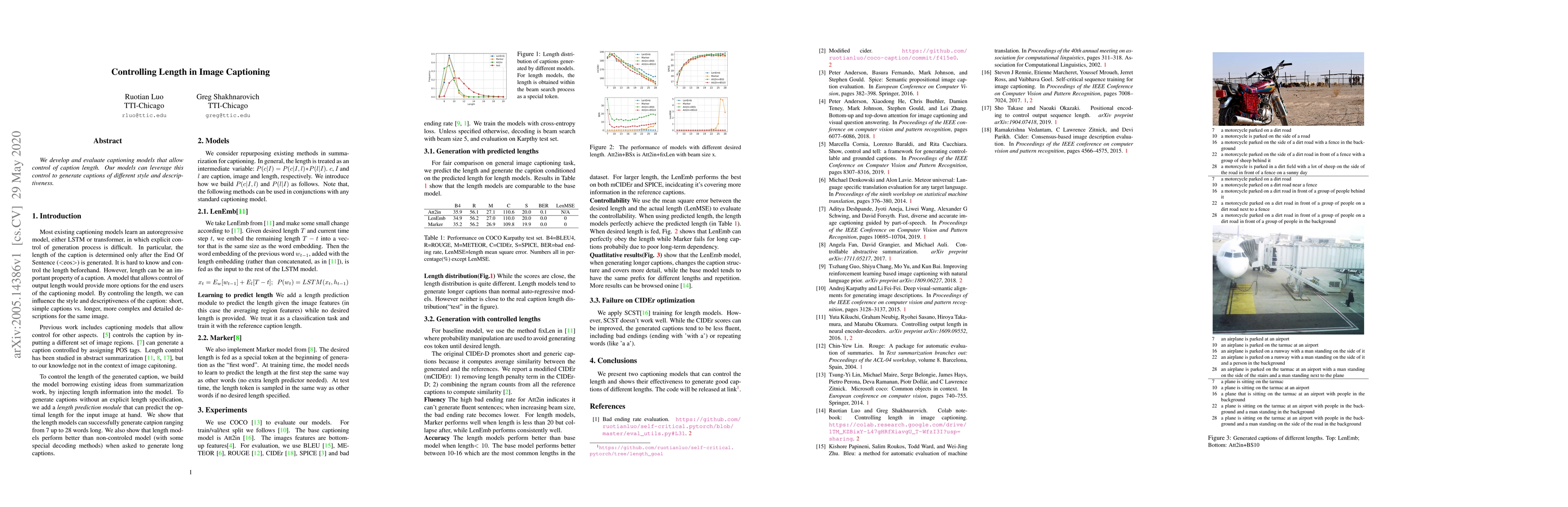 We develop and evaluate captioning models that allow control of caption length. Our models can leverage this control to generate captions of different style and descriptiveness.