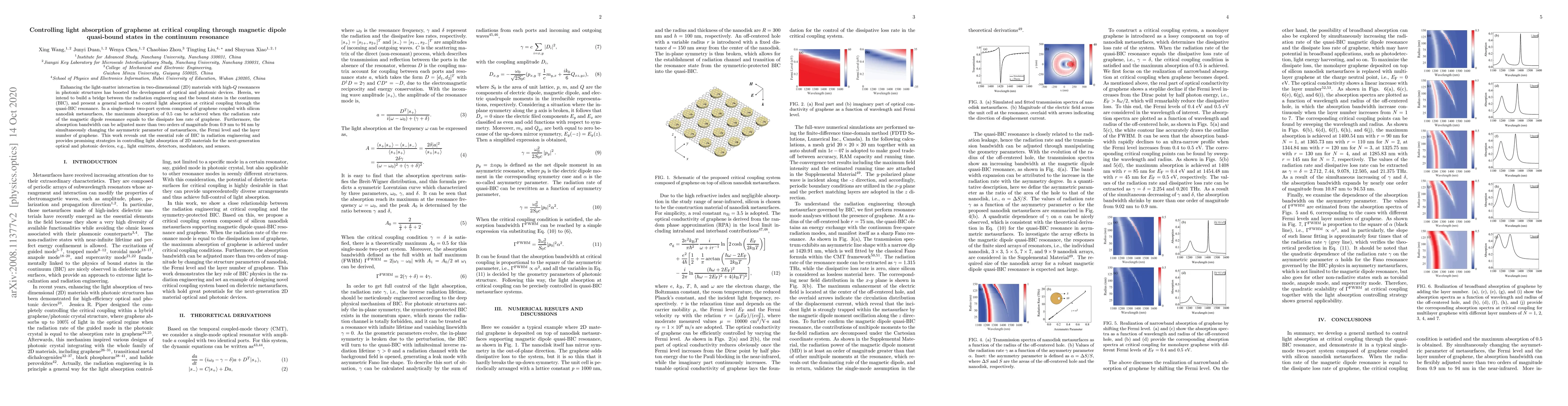 Enhancing the light-matter interaction in two-dimensional (2D) materials with high-$Q$ resonances in photonic structures has boosted the development of optical and photonic devices. Herein, we intend to build a bridge between the radiation engineering and the bound states in the continuum (BIC), and present a general method to control light absorption at critical coupling through the quasi-BIC resonance. In a single-mode two-port system composed of graphene coupled with silicon nanodisk metasurfaces, the maximum absorption of 0.5 can be achieved when the radiation rate of the magnetic dipole resonance equals to the dissipate loss rate of graphene. Furthermore, the absorption bandwidth can be adjusted more than two orders of magnitude from 0.9 nm to 94 nm by simultaneously changing the asymmetric parameter of metasurfaces, the Fermi level and the layer number of graphene. This work reveals out the essential role of BIC in radiation engineering and provides promising strategies in controlling light absorption of 2D materials for the next-generation optical and photonic devices, e.g., light emitters, detectors, modulators, and sensors.