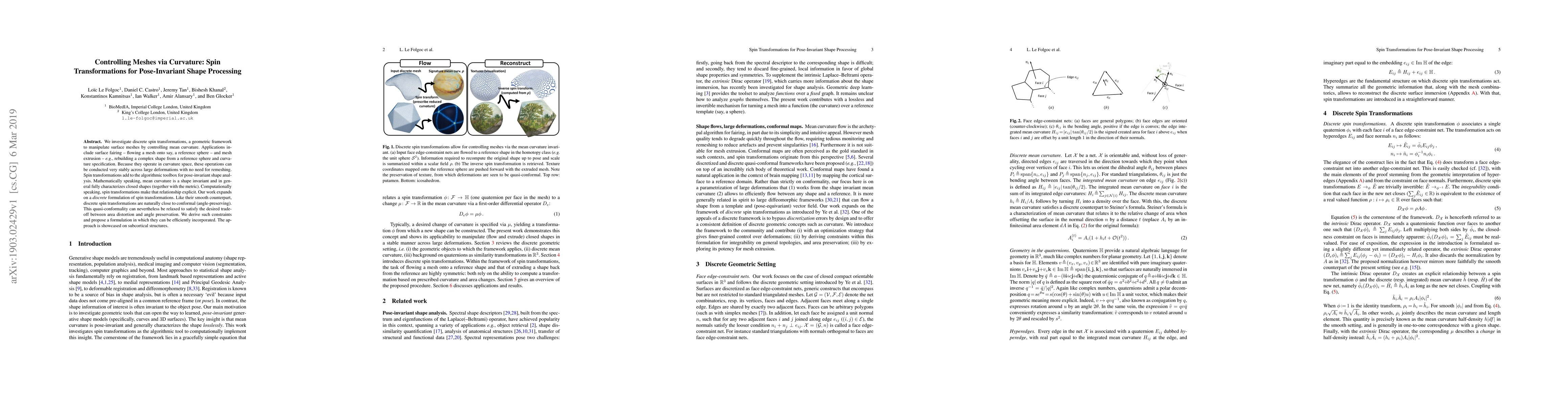 We investigate discrete spin transformations, a geometric framework to manipulate surface meshes by controlling mean curvature. Applications include surface fairing -- flowing a mesh onto say, a reference sphere -- and mesh extrusion -- e.g., rebuilding a complex shape from a reference sphere and curvature specification. Because they operate in curvature space, these operations can be conducted very stably across large deformations with no need for remeshing. Spin transformations add to the algorithmic toolbox for pose-invariant shape analysis. Mathematically speaking, mean curvature is a shape invariant and in general fully characterizes closed shapes (together with the metric). Computationally speaking, spin transformations make that relationship explicit. Our work expands on a discrete formulation of spin transformations. Like their smooth counterpart, discrete spin transformations are naturally close to conformal (angle-preserving). This quasi-conformality can nevertheless be relaxed to satisfy the desired trade-off between area distortion and angle preservation. We derive such constraints and propose a formulation in which they can be efficiently incorporated. The approach is showcased on subcortical structures.