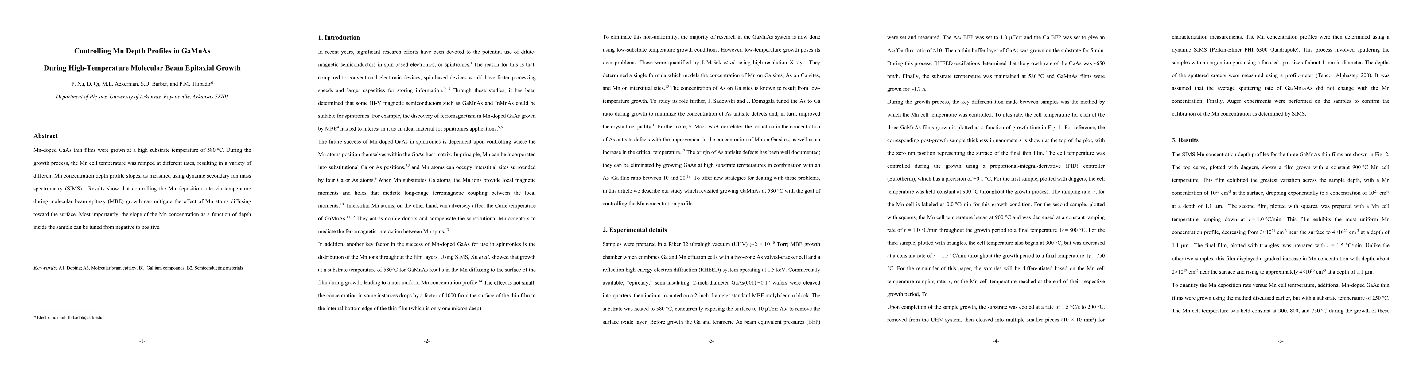 This study explores controlling Mn depth profiles in GaMnAs via varying Mn cell temperature ramps during high-temperature MBE growth at 580°C. The Mn concentration depth profile slopes were manipulated to mitigate surface diffusion, demonstrating tunable concentration profiles from negative to positive, as measured by SIMS.