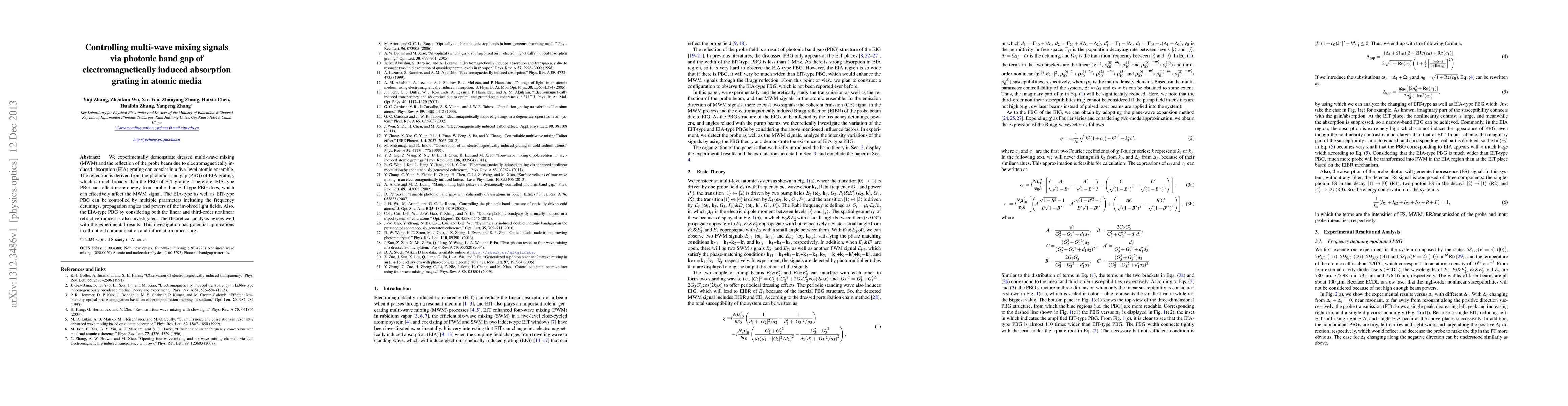 We experimentally demonstrate dressed multi-wave mixing (MWM) and the reflection of the probe beam due to electromagnetically induced absorption (EIA) grating can coexist in a five-level atomic ensemble. The reflection is derived from the photonic band gap (PBG) of EIA grating, which is much broader than the PBG of EIT grating. Therefore, EIA-type PBG can reflect more energy from probe than EIT-type PBG does, which can effectively affect the MWM signal. The EIA-type as well as EIT-type PBG can be controlled by multiple parameters including the frequency detunings, propagation angles and powers of the involved light fields. Also, the EIA-type PBG by considering both the linear and third-order nonlinear refractive indices is also investigated. The theoretical analysis agrees well with the experimental results. This investigation has potential applications in all-optical communication and information processing.