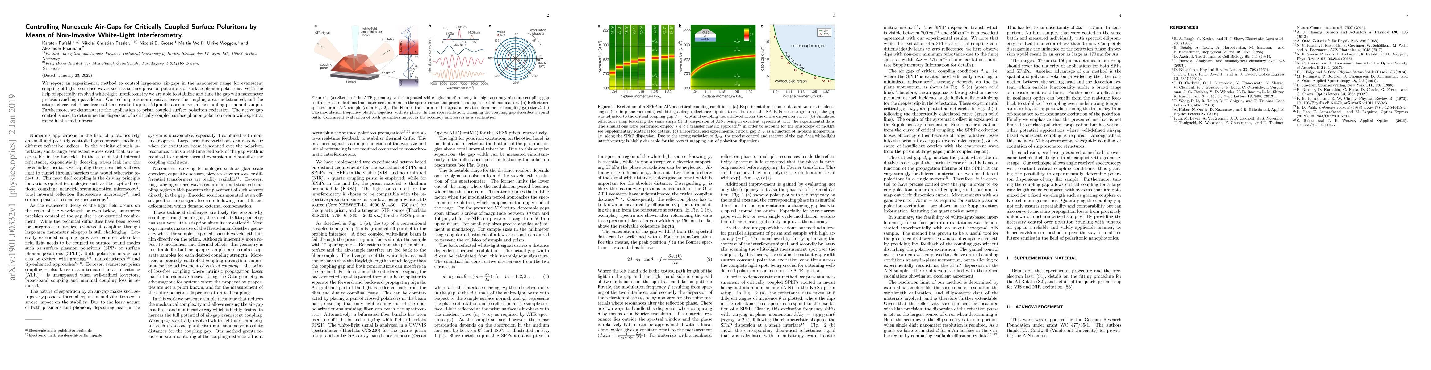This paper presents a non-invasive white-light interferometry method for controlling nanoscale air-gaps with nanometer precision, enabling the evanescent coupling of light to surface polaritons. The technique allows for real-time, reference-free monitoring of gap stabilization and tuning, facilitating the study of surface phonon polariton dispersion in the mid-infrared.