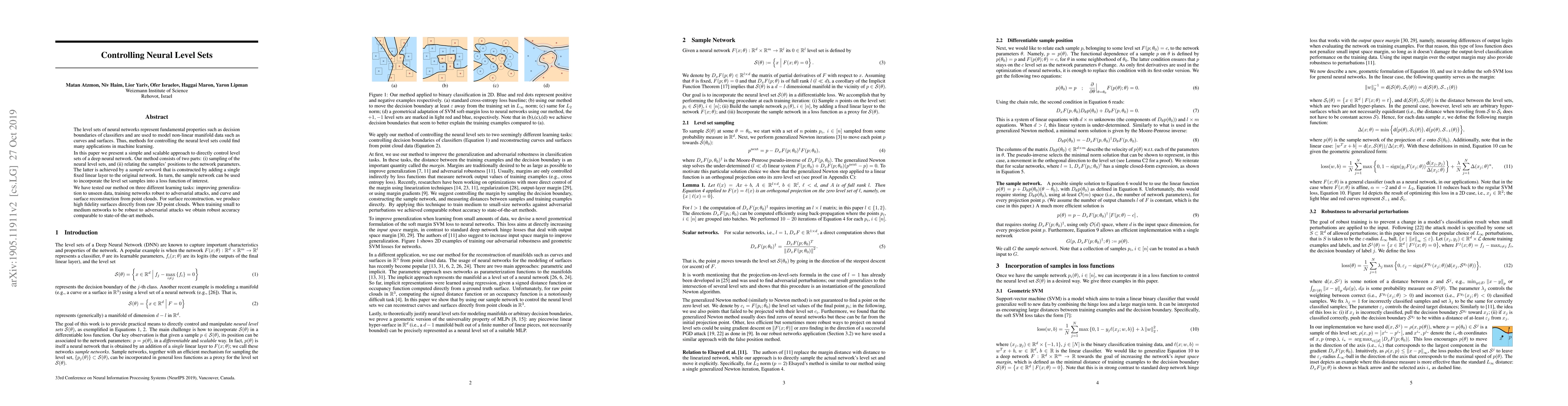Researchers have developed a method to control neural level sets, which can improve generalization to new data, robustness against adversarial attacks, and 3D surface reconstruction from point clouds.