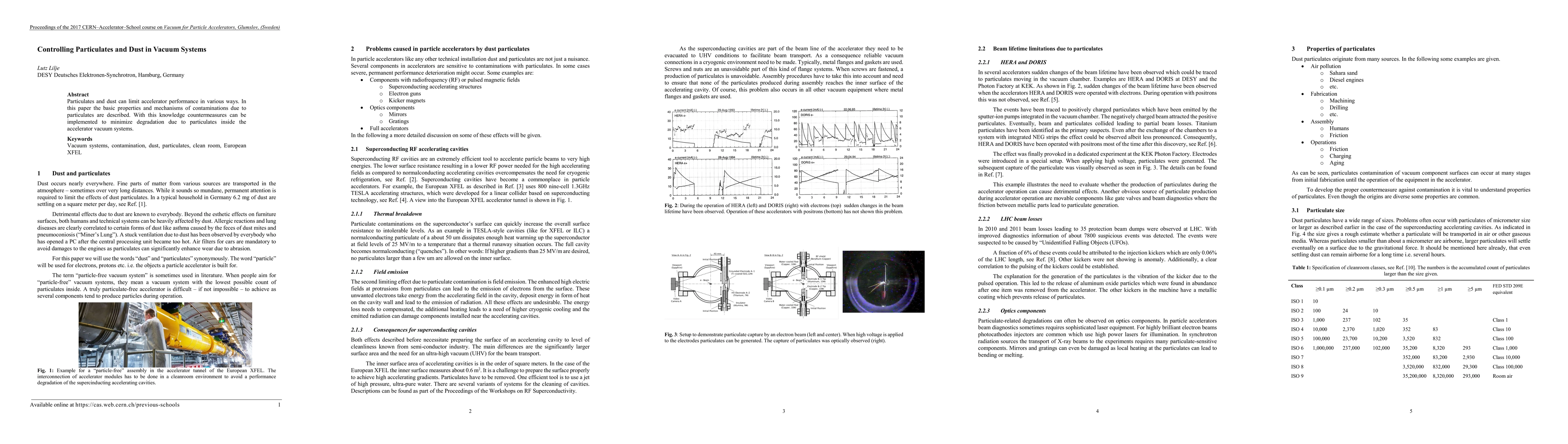 This paper investigates how particulates affect accelerator performance and proposes countermeasures to minimize damage from dust in vacuum systems.