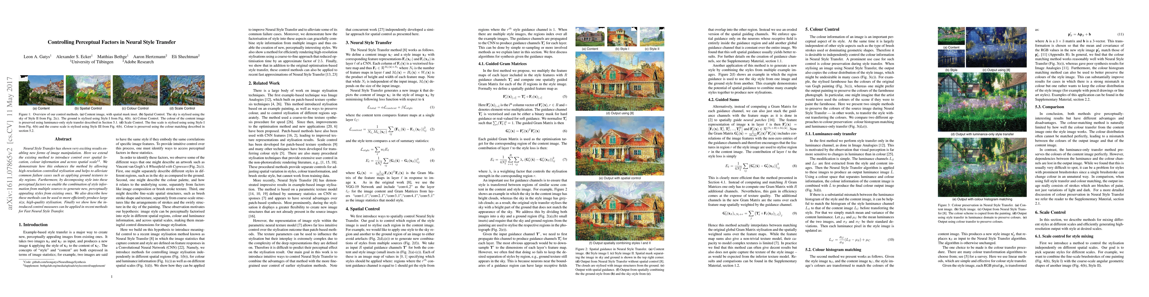 Neural Style Transfer has shown very exciting results enabling new forms of image manipulation. Here we extend the existing method to introduce control over spatial location, colour information and across spatial scale. We demonstrate how this enhances the method by allowing high-resolution controlled stylisation and helps to alleviate common failure cases such as applying ground textures to sky regions. Furthermore, by decomposing style into these perceptual factors we enable the combination of style information from multiple sources to generate new, perceptually appealing styles from existing ones. We also describe how these methods can be used to more efficiently produce large size, high-quality stylisation. Finally we show how the introduced control measures can be applied in recent methods for Fast Neural Style Transfer.