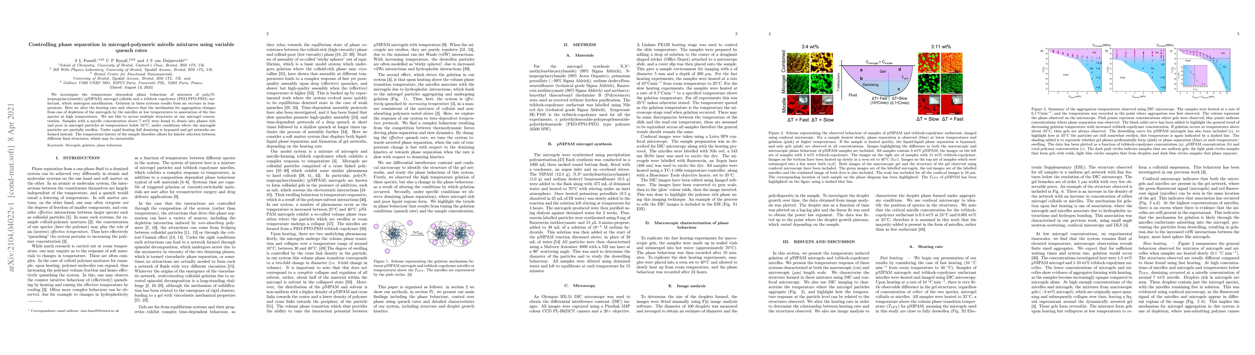 Researchers discovered that changing the heating rate of a mixture of microgel particles and surfactant micelles can control their phase separation, allowing for the formation of different gel networks at high temperatures. This temperature history enables kinetic selection between metastable structures.