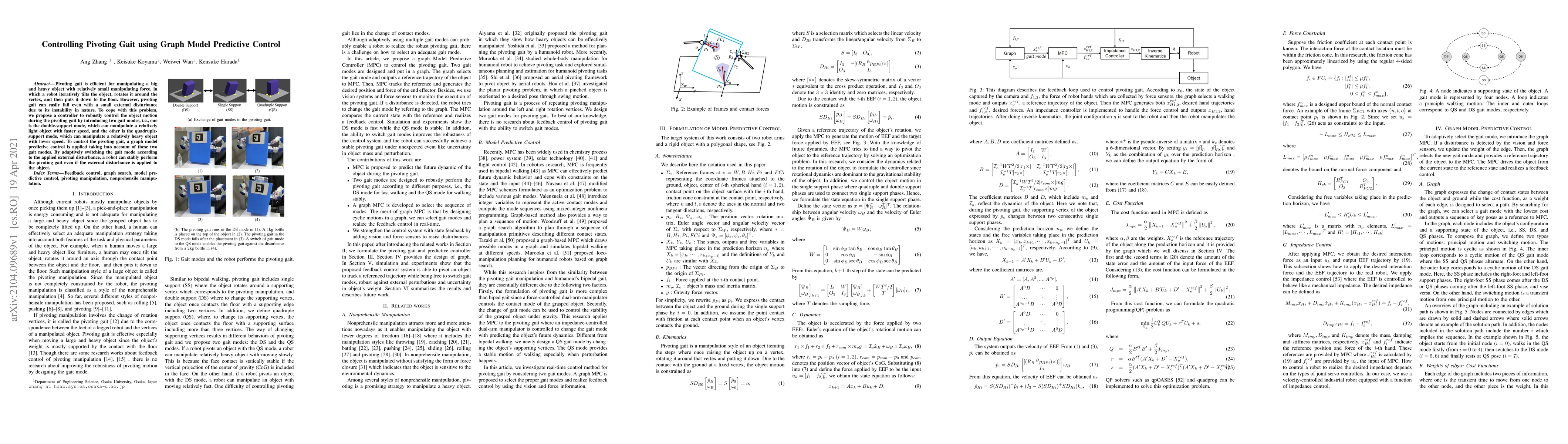 This paper proposes a graph model predictive control method to robustly manage pivoting gait in robots, introducing two gait modes to handle different object weights and disturbances. The adaptive switching between double-support and quadruple-support modes ensures stable pivoting even under external disturbances.