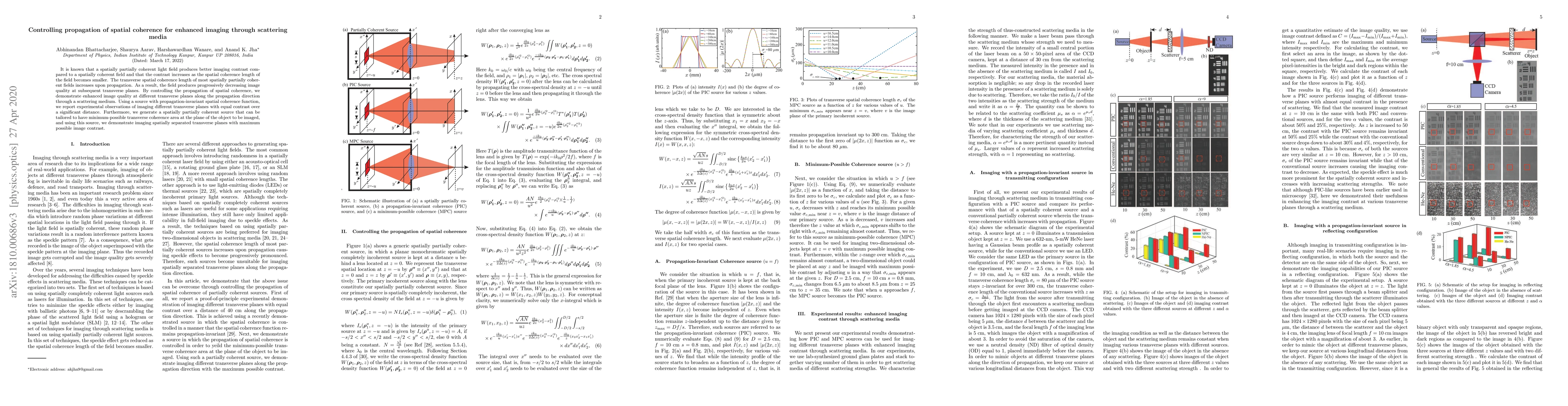This paper explores controlling the propagation of spatial coherence to enhance imaging through scattering media, demonstrating improved image quality at various transverse planes. By utilizing a propagation-invariant spatial coherence function, the authors achieve consistent contrast over a significant distance and maximize image contrast for spatially separated planes.