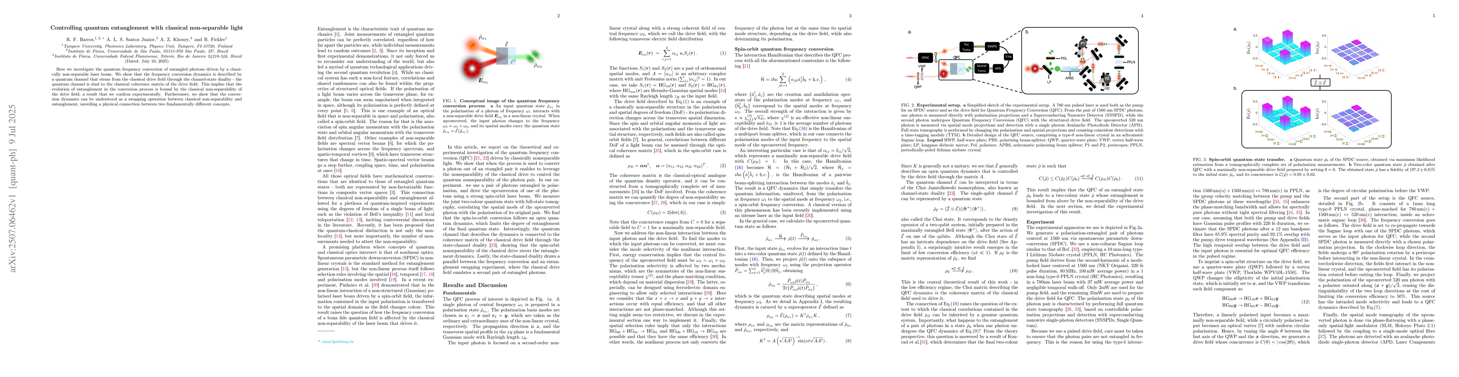 This research demonstrates that classical non-separable laser light can control quantum entanglement via frequency conversion, described by a quantum channel dual to the laser's coherence matrix. Experimental confirmation shows entanglement evolution is restricted by the laser's non-separability, revealing a link between classical and quantum realms.