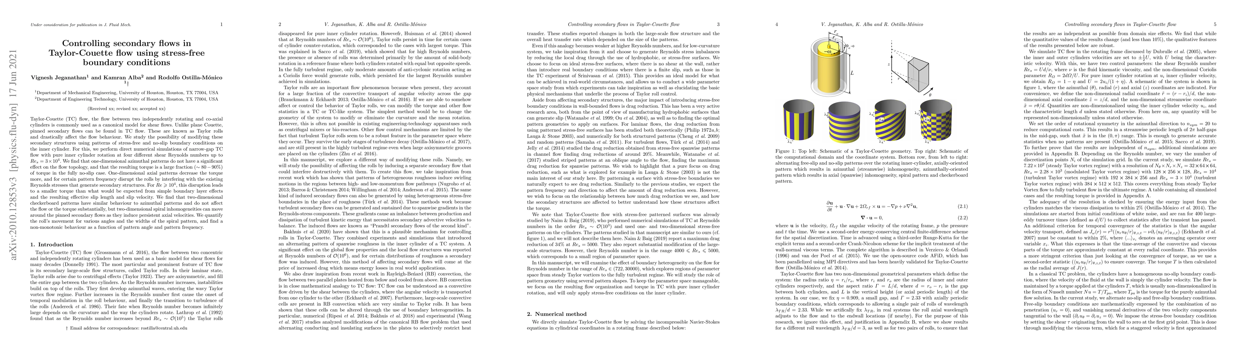 This study investigates the control of secondary flows in Taylor-Couette flow through stress-free and no-slip boundary conditions on the inner cylinder. Direct numerical simulations reveal that while one-dimensional patterns have minimal impact on flow topology, two-dimensional spiral patterns can induce axial velocities and shift the secondary structures, leading to a non-monotonic response in torque and slip behavior.