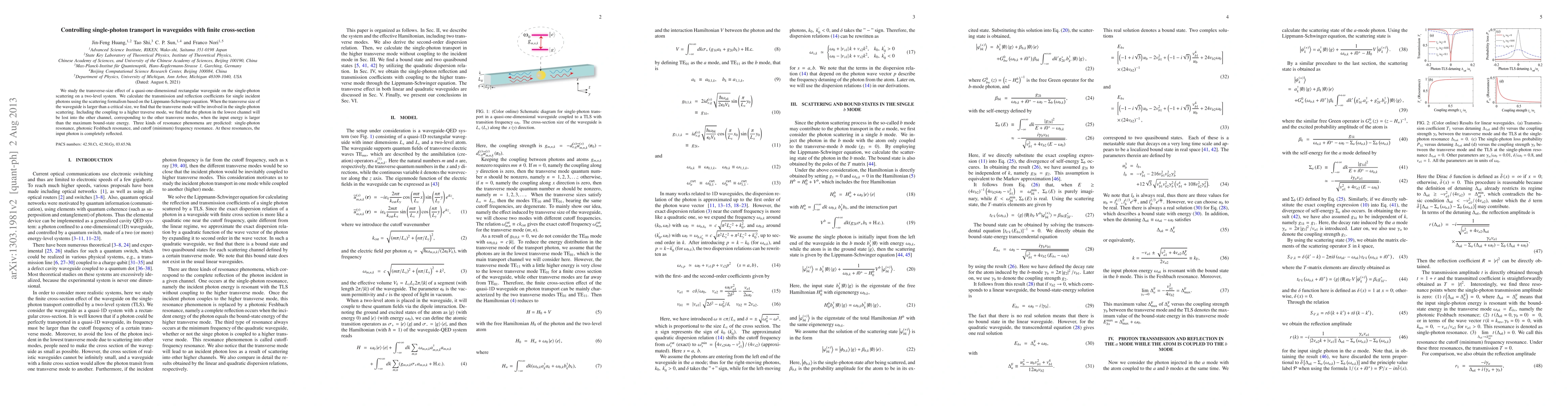 We study the transverse-size effect of a quasi-one-dimensional rectangular waveguide on the single-photon scattering on a two-level system. We calculate the transmission and reflection coefficients for single incident photons using the scattering formalism based on the Lippmann-Schwinger equation. When the transverse size of the waveguide is larger than a critical size, we find that the transverse mode will be involved in the single-photon scattering. Including the coupling to a higher traverse mode, we find that the photon in the lowest channel will be lost into the other channel, corresponding to the other transverse modes, when the input energy is larger than the maximum bound-state energy. Three kinds of resonance phenomena are predicted: single-photon resonance, photonic Feshbach resonance, and cutoff (minimum) frequency resonance. At these resonances, the input photon is completely reflected.