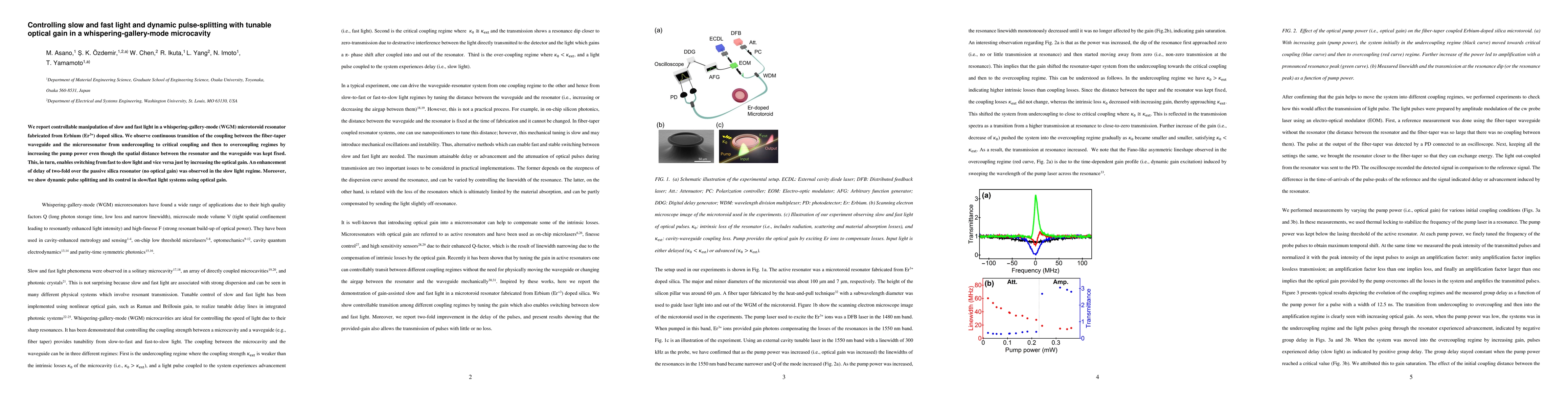Researchers controlled slow and fast light in a microcavity with tunable optical gain, enabling switching between regimes just by increasing the pump power, resulting in a two-fold delay enhancement over passive silica.