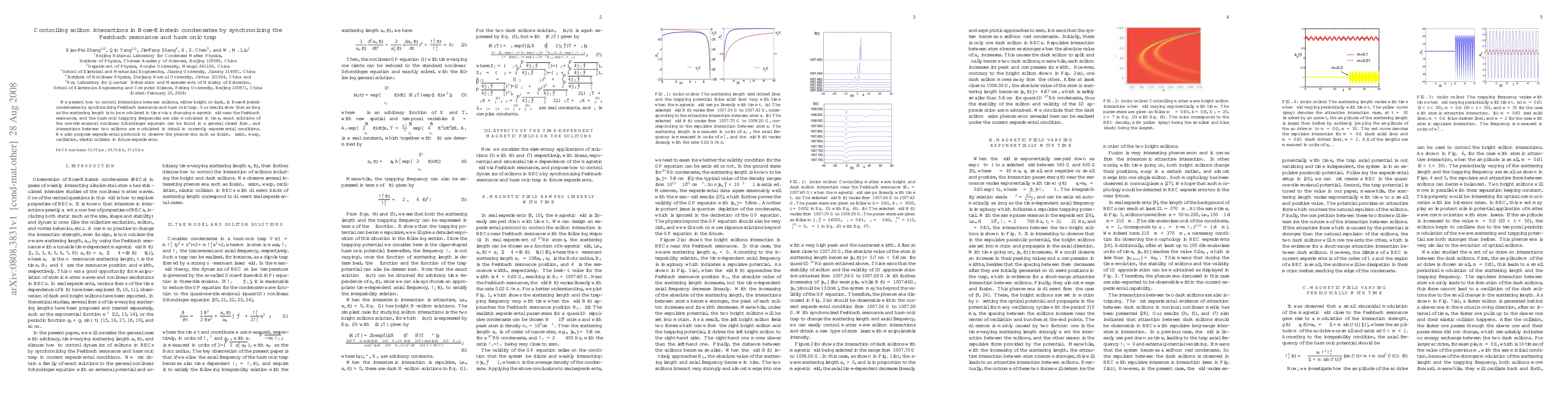 This paper demonstrates how to manipulate soliton interactions in Bose-Einstein condensates by synchronizing Feshbach resonance and harmonic trap modulation. By modulating the scattering length and trapping frequencies, exact solutions of the one-dimensional nonlinear Schrödinger equation are obtained, enabling detailed control over soliton interactions, with proposed experimental protocols for observing phenomena like fusion, fission, and elastic collisions.
