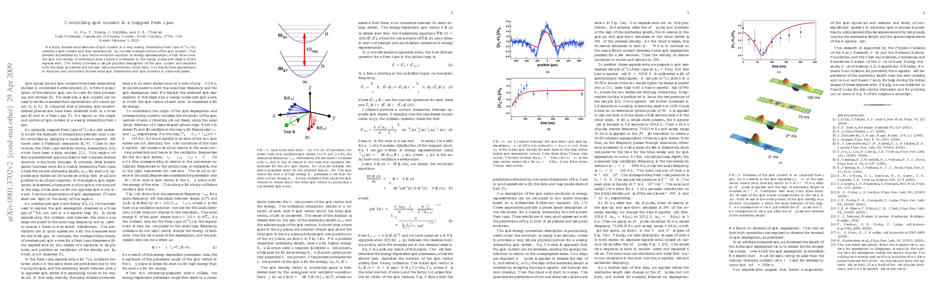 We study fundamental features of spin current in a very weakly interacting Fermi gas of $^6$Li. By creating a spin current and then reversing its flow, we demonstrate control of the spin current. This reversal is predicted by a spin vector evolution equation in energy representation, which shows how the spin and energy of individual atoms become correlated in the nearly undamped regime of the experiments. The theory provides a simple physical description of the spin current and explains both the large amplitude and the slow temporal evolution of the data. Our results have applications in studying and controlling fundamental spin interactions and spin currents in ultra-cold gases.