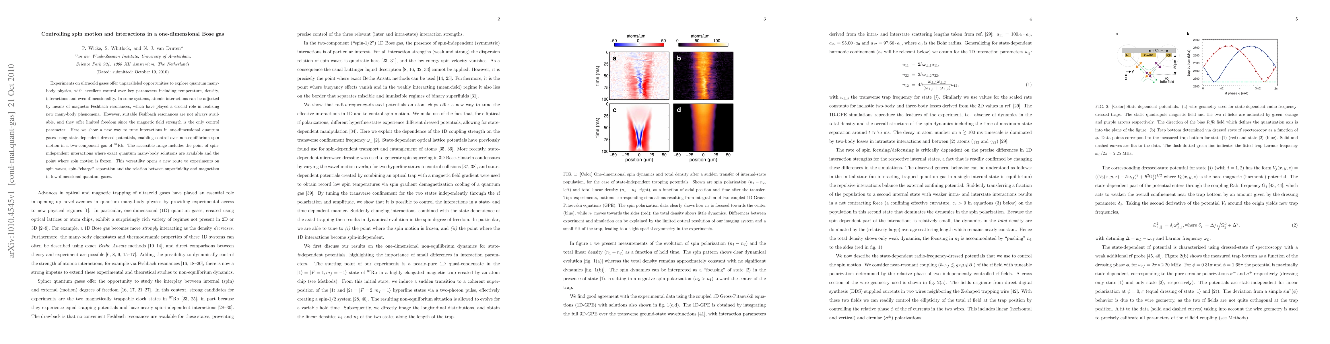 Experiments on ultracold gases offer unparalleled opportunities to explore quantum many-body physics, with excellent control over key parameters including temperature, density, interactions and even dimensionality. In some systems, atomic interactions can be adjusted by means of magnetic Feshbach resonances, which have played a crucial role in realizing new many-body phenomena. However, suitable Feshbach resonances are not always available, and they offer limited freedom since the magnetic field strength is the only control parameter. Here we show a new way to tune interactions in one-dimensional quantum gases using state-dependent dressed potentials, enabling control over non-equilibrium spin motion in a two-component gas of 87Rb. The accessible range includes the point of spin-independent interactions where exact quantum many-body solutions are available and the point where spin motion is frozen. This versatility opens a new route to experiments on spin waves, spin-"charge" separation and the relation between superfluidity and magnetism in low-dimensional quantum gases.