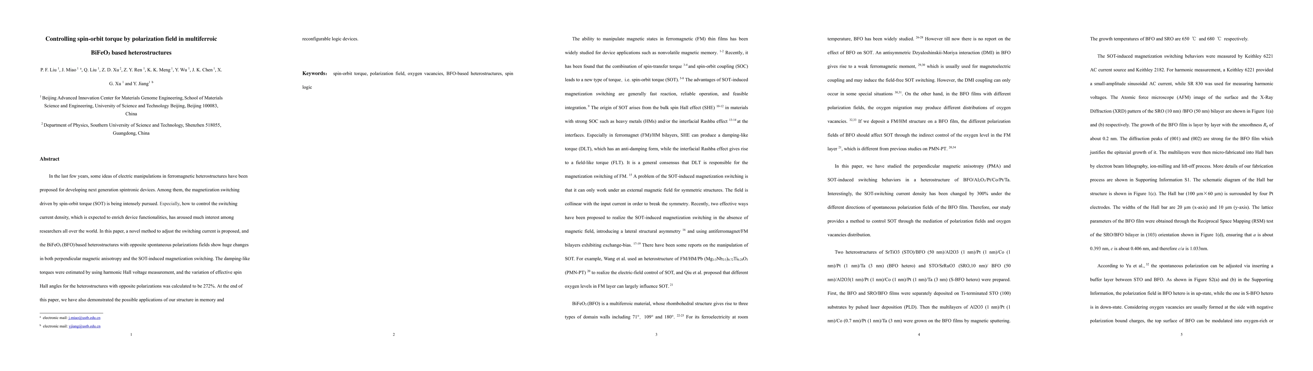 This paper proposes a novel method to control spin-orbit torque (SOT) in BiFeO3-based heterostructures by manipulating the polarization field, demonstrating significant changes in perpendicular magnetic anisotropy and SOT-induced magnetization switching. The study shows a 272% variation in effective spin Hall angles and suggests potential applications in memory and reconfigurable logic devices.