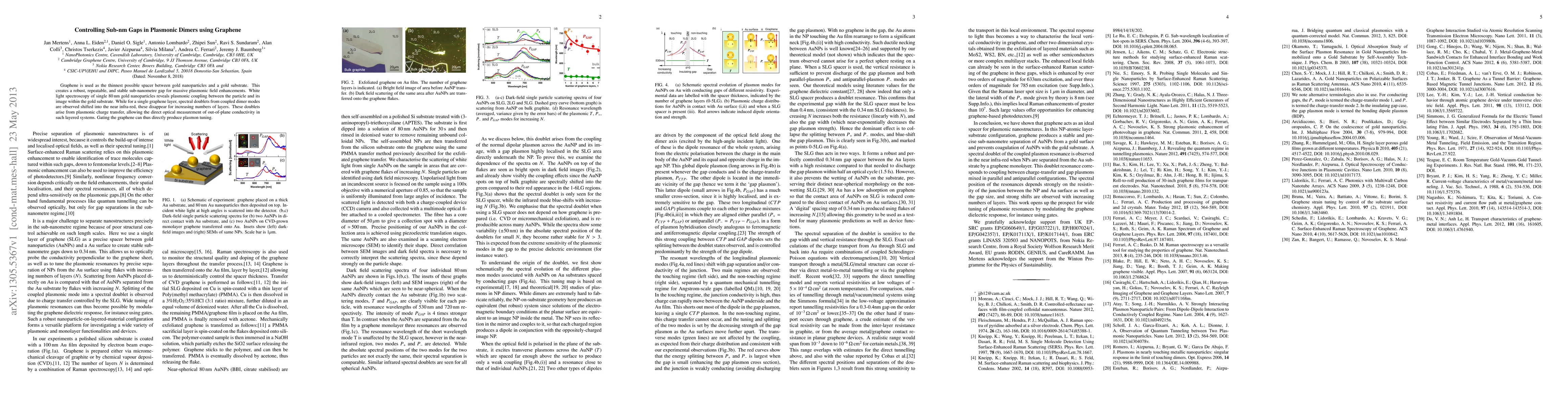 This paper explores using graphene as a spacer to create stable sub-nanometre gaps in plasmonic dimers, achieving significant plasmonic field enhancements. Spectral analysis reveals plasmonic coupling and charge transfer, with tunable plasmonic properties enabled by graphene gating.