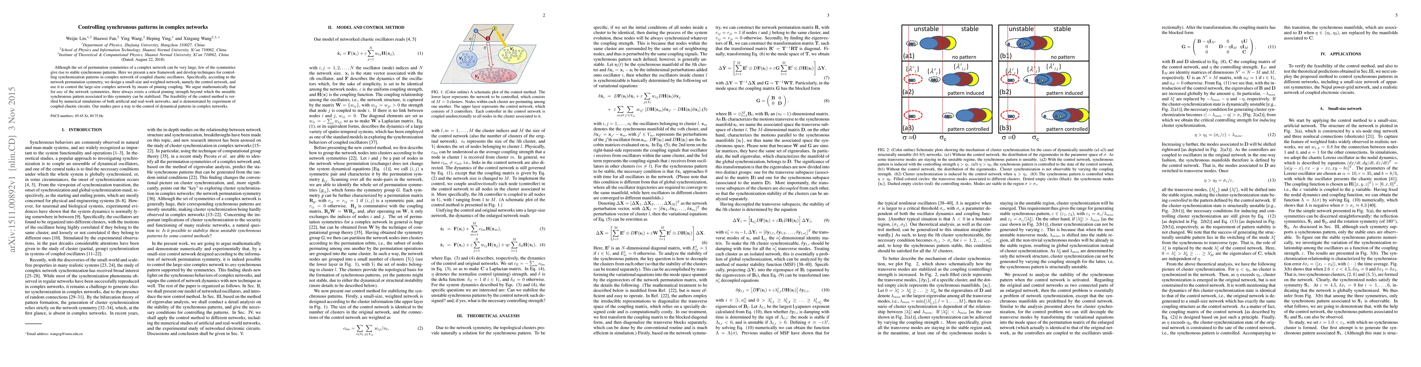 This paper introduces a new framework for controlling synchronization patterns in complex networks of coupled chaotic oscillators by designing a small-size control network based on network permutation symmetry. The authors demonstrate mathematically that a critical pinning strength can stabilize previously unstable synchronous patterns, validated through numerical simulations and experiments on both artificial and real-world networks.