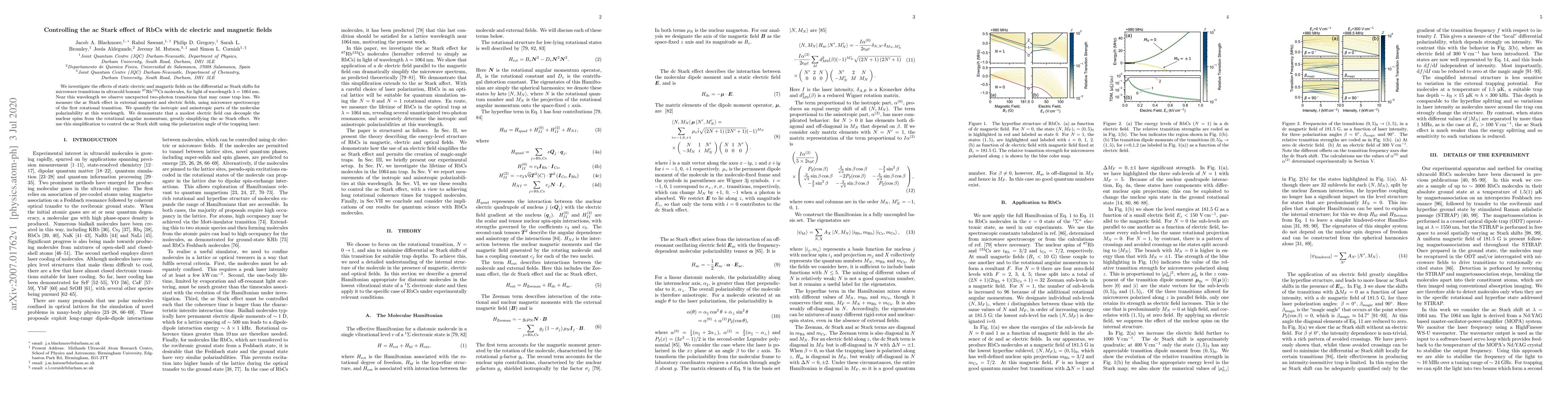 This paper investigates the influence of static electric and magnetic fields on the ac Stark effect in ultracold $^{87}$Rb$^{133}$Cs molecules, revealing unexpected two-photon transitions. It demonstrates that a modest electric field can decouple nuclear spins from rotational angular momentum, allowing control of the ac Stark shift via the trapping laser's polarization angle.