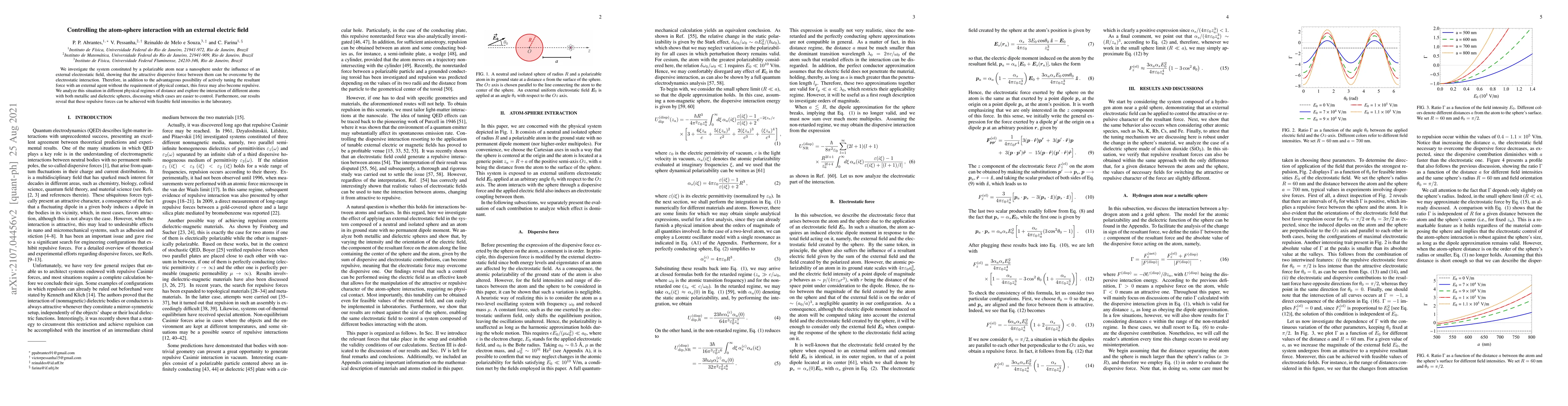 This study explores how an external electric field can modulate the interaction between a polarizable atom and a nanosphere, demonstrating that the attractive dispersive force can be overcome and even turned repulsive. The research examines various physical regimes and materials, revealing feasible laboratory conditions for achieving these repulsive forces.