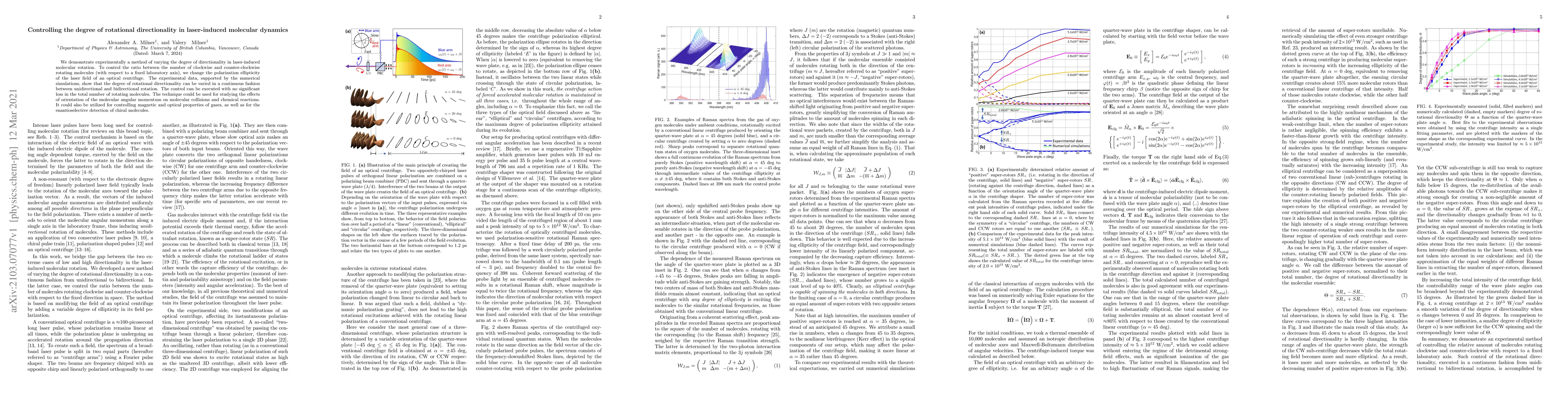 We demonstrate experimentally a method of varying the degree of directionality in laser-induced molecular rotation. To control the ratio between the number of clockwise and counter-clockwise rotating molecules (with respect to a fixed laboratory axis), we change the polarization ellipticity of the laser field of an optical centrifuge. The experimental data, supported by the numerical simulations, show that the degree of rotational directionality can be varied in a continuous fashion between unidirectional and bidirectional rotation. The control can be executed with no significant loss in the total number of rotating molecules. The technique could be used for studying the effects of orientation of the molecular angular momentum on molecular collisions and chemical reactions. It could also be utilized for controlling magnetic and optical properties of gases, as well as for the enantioselective detection of chiral molecules.