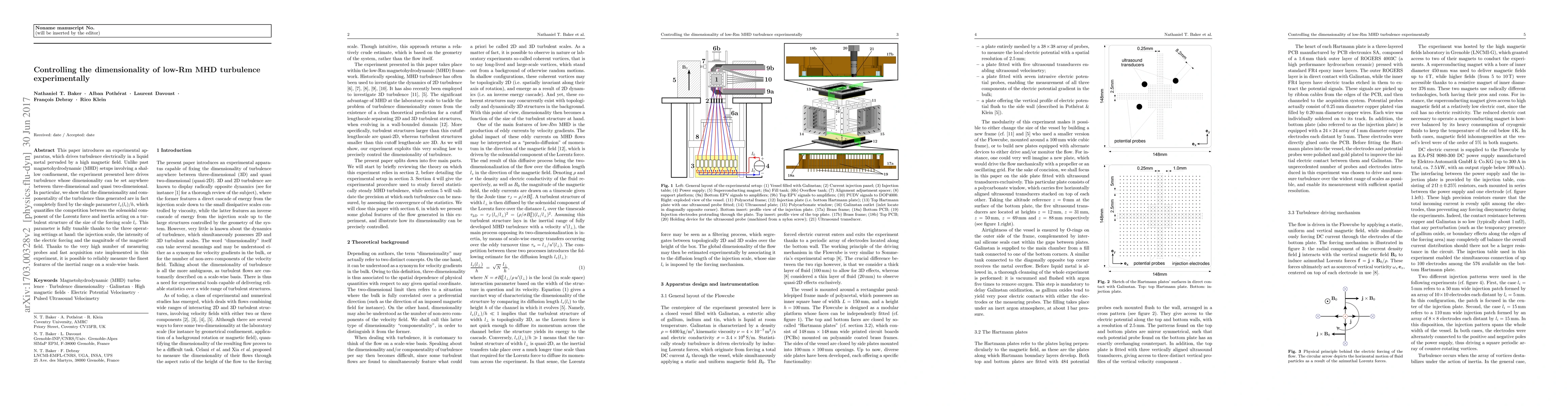 This paper introduces an experimental apparatus that can generate low-Rm MHD turbulence with dimensionality controlled by a single parameter, allowing for the study of its properties in unprecedented detail. The experiment provides a new tool for researchers to investigate the behavior of turbulent fluids under varying conditions.