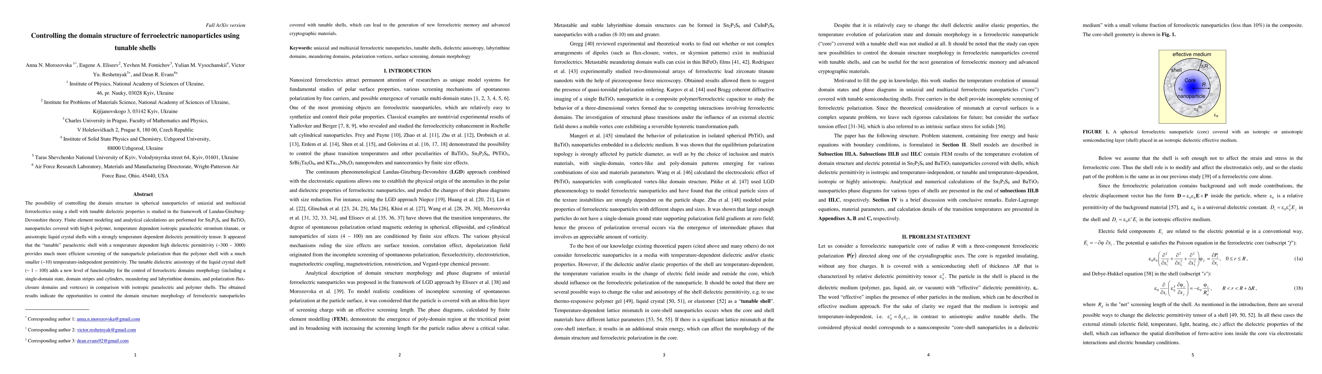 This paper explores controlling the domain structure in ferroelectric nanoparticles using tunable shells, demonstrating that high-k polymer, temperature-dependent isotropic paraelectric shells, and anisotropic liquid crystal shells can significantly influence the domain morphology. The study finds that liquid crystal shells offer superior control over domain structures compared to polymer shells.