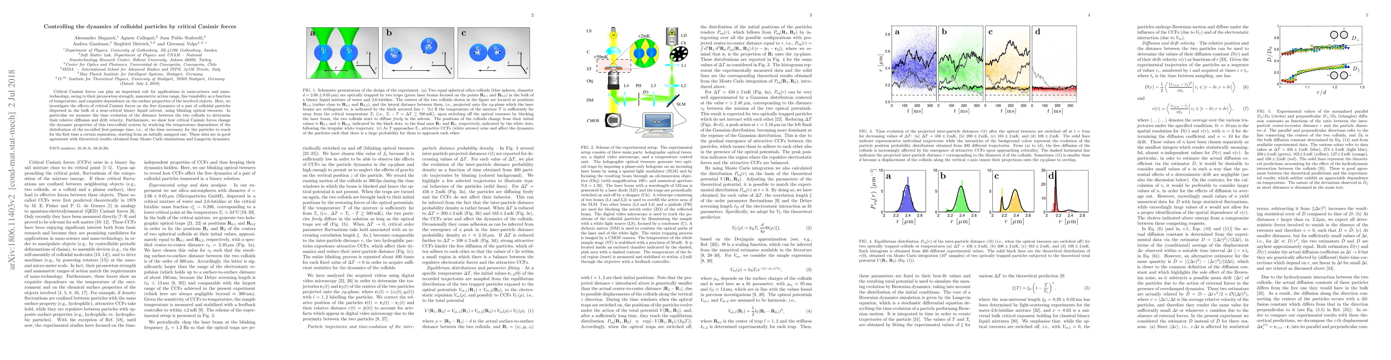 This paper investigates how critical Casimir forces influence the dynamics of colloidal particles in a near-critical binary liquid, using optical tweezers to measure their relative diffusion and drift. It demonstrates the temperature dependence of these forces on the first-passage time distribution and confirms theoretical predictions with Monte Carlo simulations and Langevin dynamics.