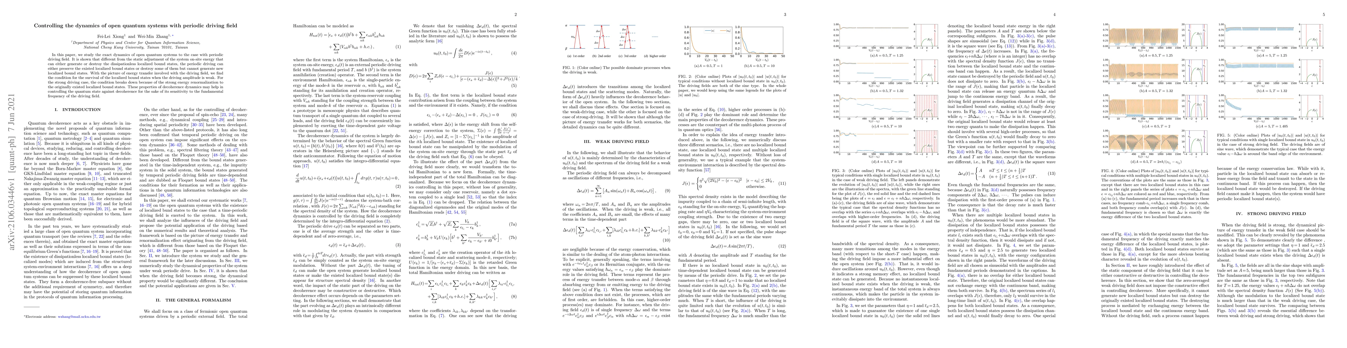 This paper investigates the dynamics of open quantum systems under periodic driving fields, demonstrating that while static adjustments can create or eliminate localized bound states, periodic driving preserves or destroys them but does not generate new ones. It identifies conditions for the survival of localized states under weak driving and discusses the breakdown of these conditions under strong driving due to energy renormalization.