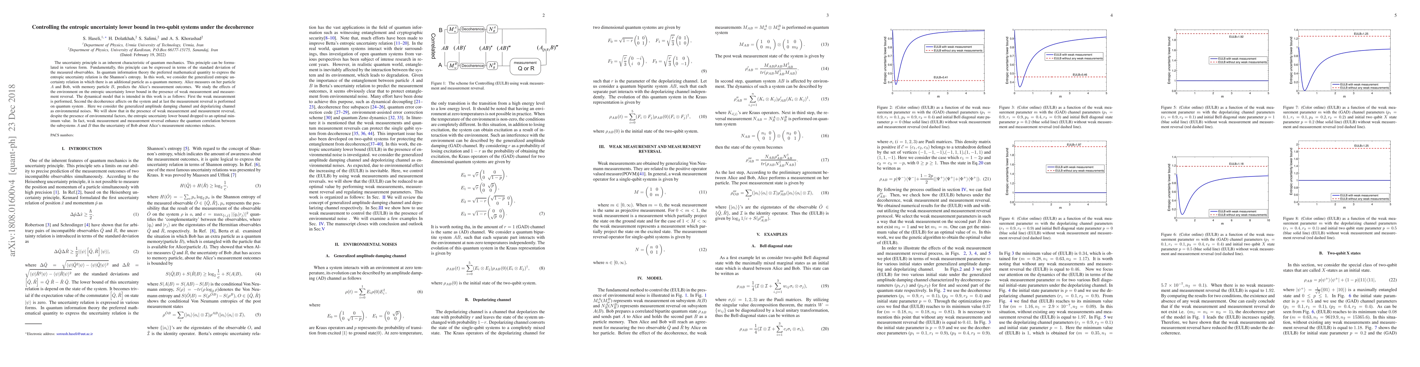 This paper investigates how weak measurement and measurement reversal influence the entropic uncertainty lower bound in two-qubit systems under decoherence. Despite environmental noise, these techniques can minimize the uncertainty, enhancing quantum correlations between subsystems and reducing Bob's uncertainty about Alice's measurement outcomes.