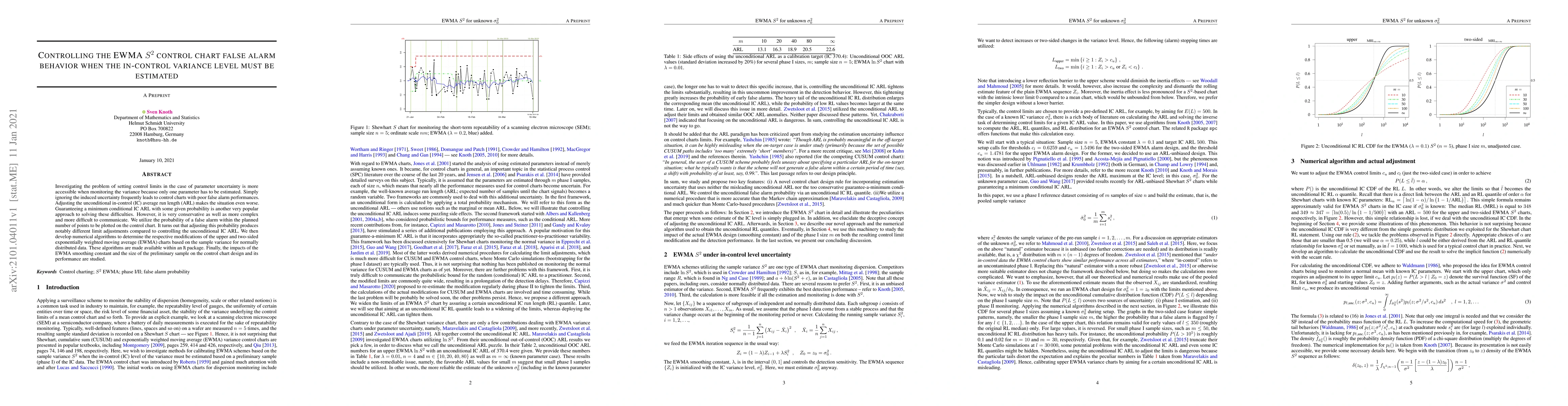 Investigating the problem of setting control limits in the case of parameter uncertainty is more accessible when monitoring the variance because only one parameter has to be estimated. Simply ignoring the induced uncertainty frequently leads to control charts with poor false alarm performances. Adjusting the unconditional in-control (IC) average run length (ARL) makes the situation even worse. Guaranteeing a minimum conditional IC ARL with some given probability is another very popular approach to solving these difficulties. However, it is very conservative as well as more complex and more difficult to communicate. We utilize the probability of a false alarm within the planned number of points to be plotted on the control chart. It turns out that adjusting this probability produces notably different limit adjustments compared to controlling the unconditional IC ARL. We then develop numerical algorithms to determine the respective modifications of the upper and two-sided exponentially weighted moving average (EWMA) charts based on the sample variance for normally distributed data. These algorithms are made available within an R package. Finally, the impacts of the EWMA smoothing constant and the size of the preliminary sample on the control chart design and its performance are studied.