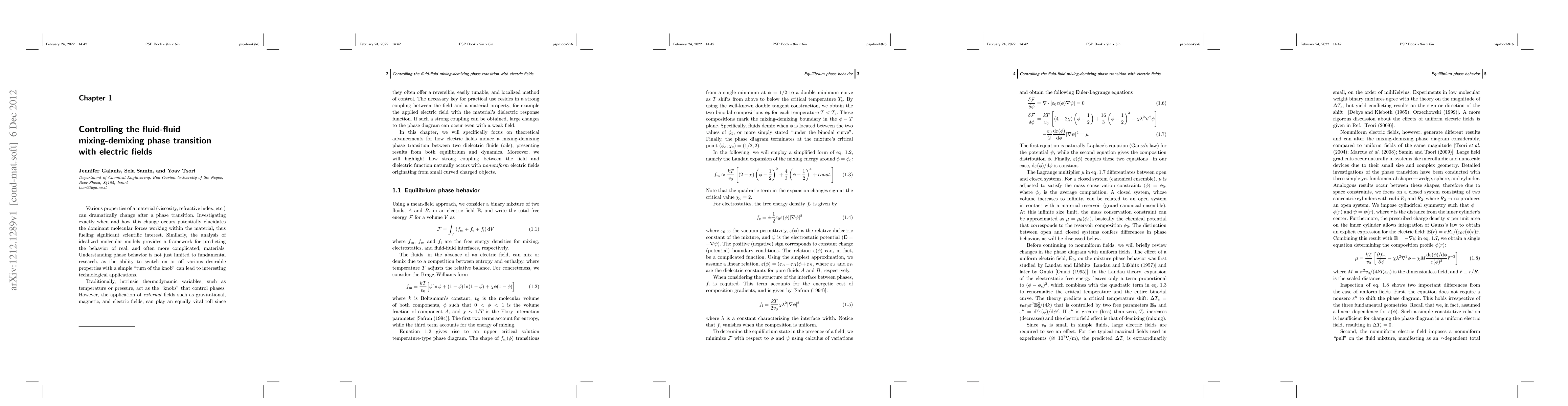 This paper reviews theoretical advances in manipulating fluid-fluid phase transitions using electric fields, demonstrating that non-uniform fields are more effective than uniform ones. The study explores the fluid concentration profile and parameters influencing the fluid-fluid interface under both equilibrium and dynamic conditions.