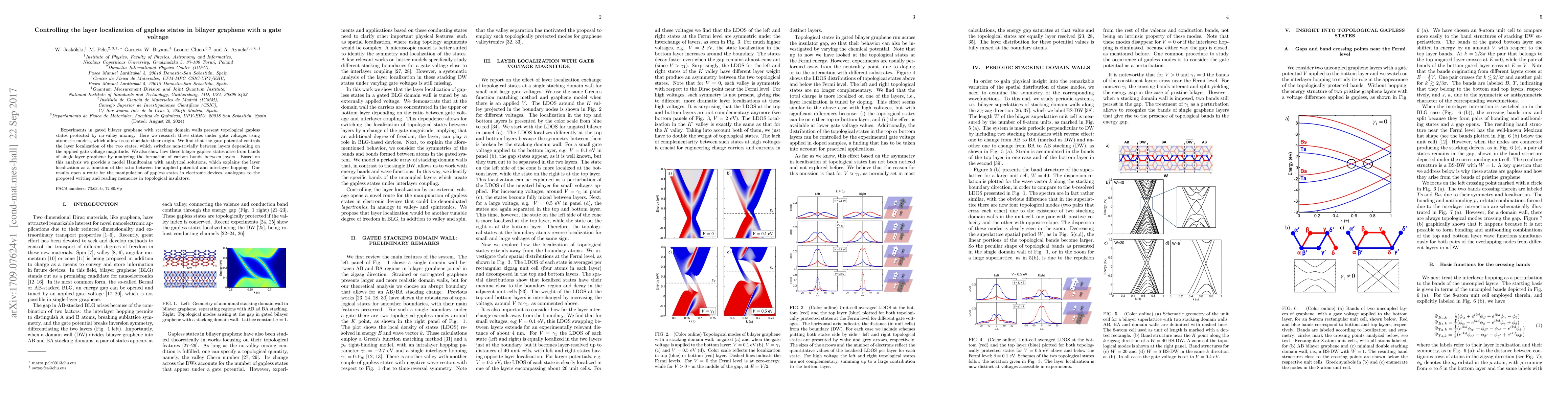 This study explores how gate voltages control the layer localization of topological gapless states in bilayer graphene, demonstrating their origin and manipulation via atomistic models. The research reveals that the applied gate voltage determines the switching behavior of these states between layers, providing a model Hamiltonian to explain this phenomenon.