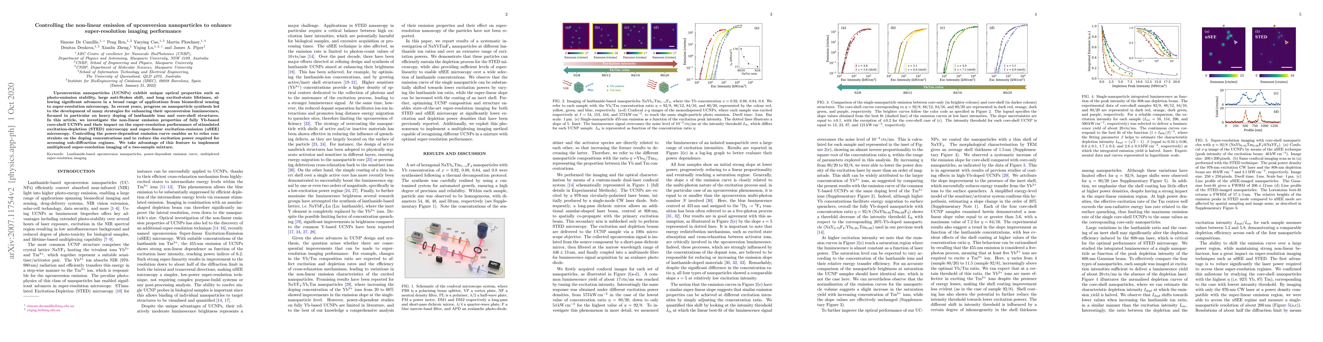 This paper explores the control of non-linear emission properties in Yb-based core-shell upconversion nanoparticles to improve super-resolution imaging techniques, specifically STED and uSEE microscopy, by reducing required excitation power and enabling multiplexed imaging.