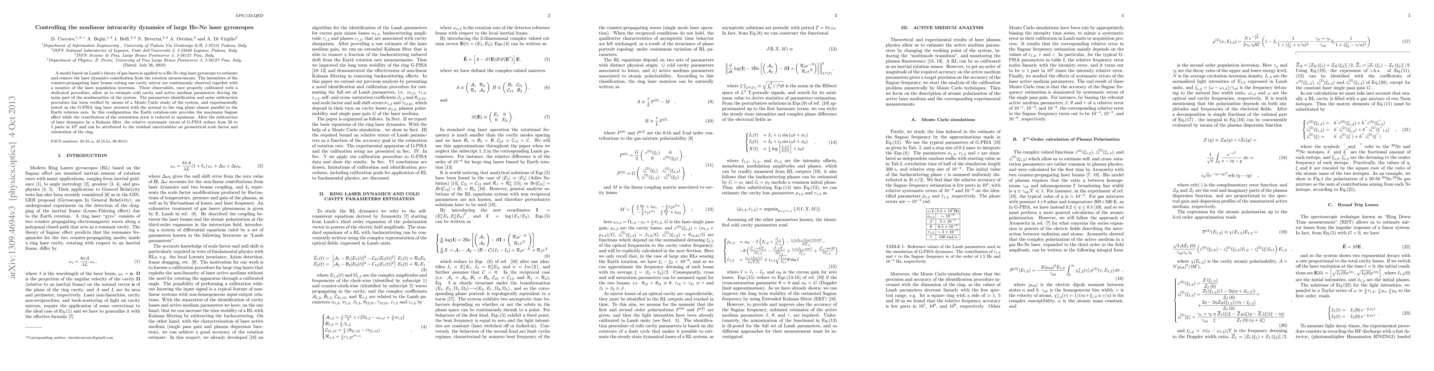 The paper presents a model and procedure for identifying and removing laser dynamics in He-Ne ring laser gyroscopes using Lamb's theory and Kalman filtering.