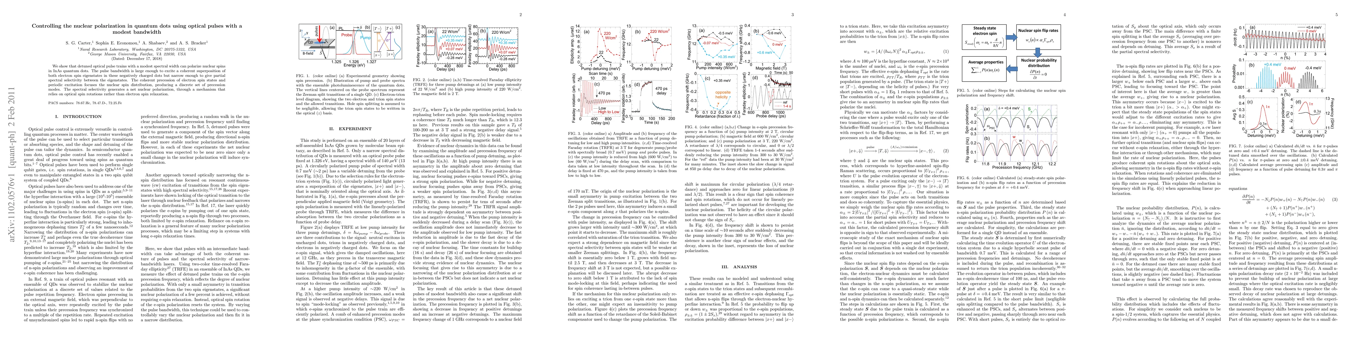 This paper demonstrates that detuned optical pulse trains with a narrow bandwidth can polarize nuclear spins in InAs quantum dots by exciting a coherent superposition of electron spin states, leading to a net nuclear polarization through optical spin rotations rather than electron spin relaxation. The spectral selectivity of the pulses focuses the nuclear spin distribution into precession modes.