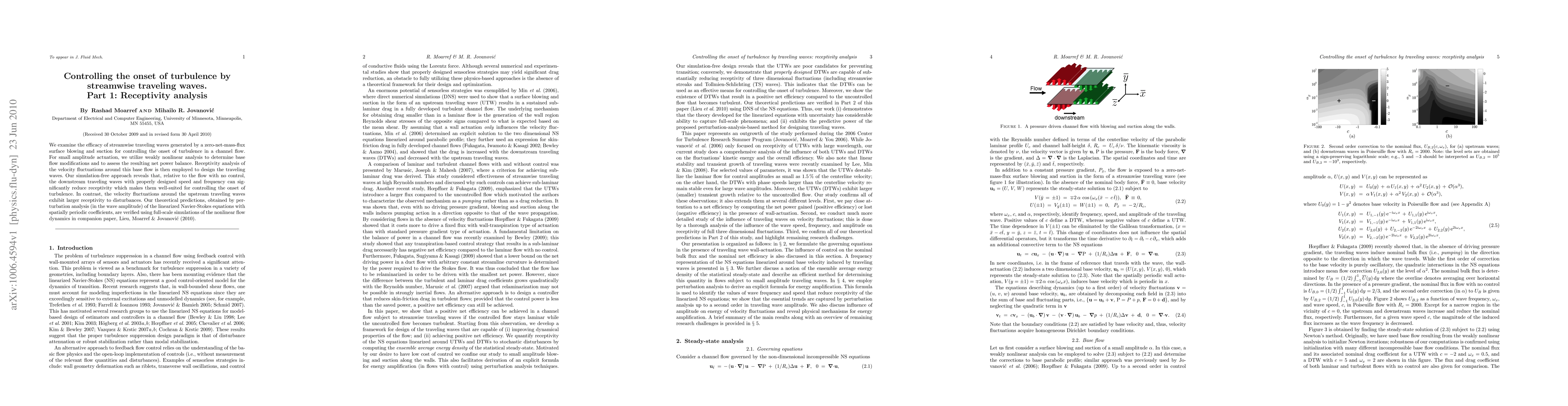 Researchers found that streamwise traveling waves can effectively control turbulence in channel flow by reducing receptivity to disturbances. By designing the speed and frequency of these waves, they can significantly reduce the onset of turbulence.