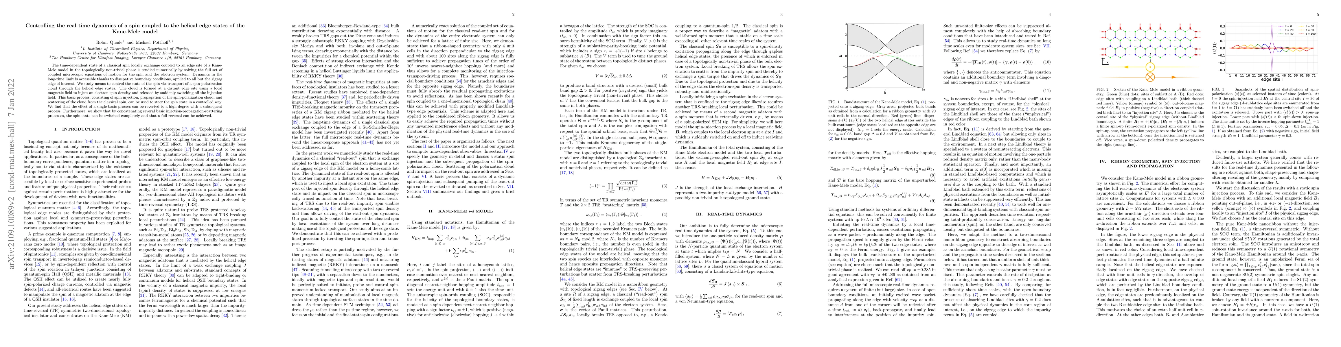 This research numerically studies a classical spin's time-dependent state coupled to helical edge states of the Kane-Mele model, using dissipative boundary conditions. The method involves controlling the spin state via transport of a spin-polarization cloud, which can be steered and completely reversed through concatenated basic processes of injection, propagation, and scattering.