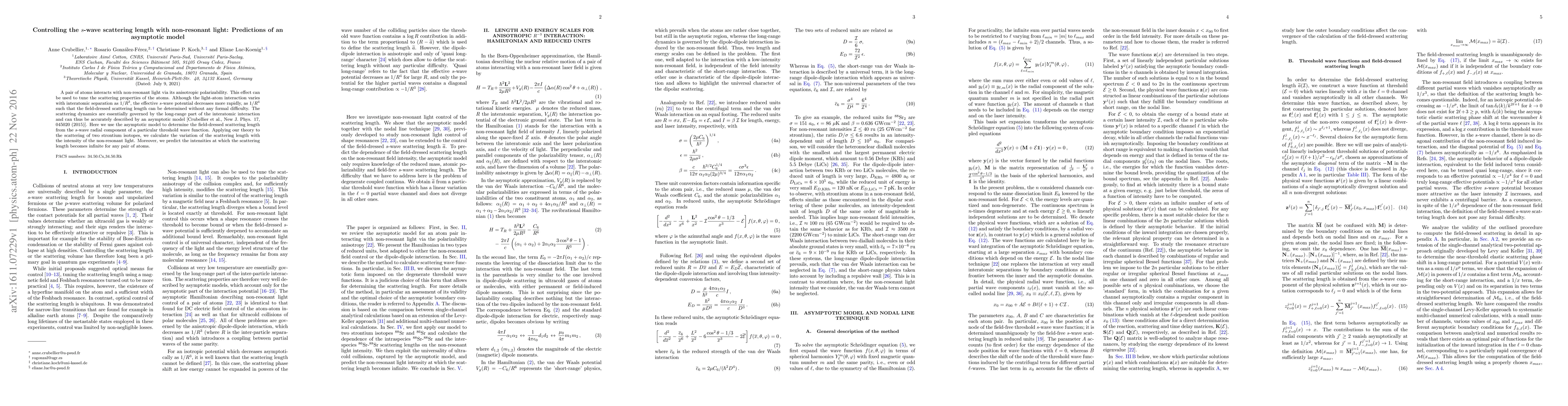 This paper proposes an asymptotic model to control the s-wave scattering length of atoms using non-resonant light, demonstrating that the effective potential decreases as $1/R^{4}$ and allowing precise tuning of scattering properties. The study calculates the scattering length variation for strontium isotopes under different light intensities and predicts the conditions for infinite scattering length.
