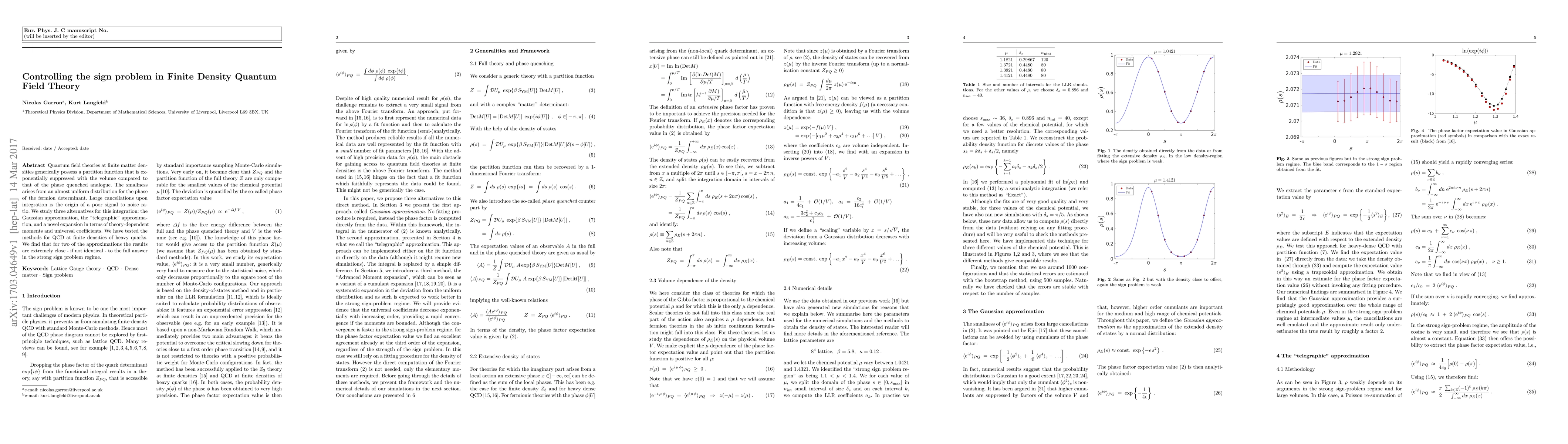 Quantum field theories at finite matter densities generically possess a partition function that is exponentially suppressed with the volume compared to that of the phase quenched analogue. The smallness arises from an almost uniform distribution for the phase of the fermion determinant. Large cancellations upon integration is the origin of a poor signal to noise ratio. We study three alternatives for this integration: the Gaussian approximation, the "telegraphic" approximation, and a novel expansion in terms of theory-dependent moments and universal coefficients. We have tested the methods for QCD at finite densities of heavy quarks. We find that for two of the approximations the results are extremely close - if not identical - to the full answer in the strong sign problem regime.