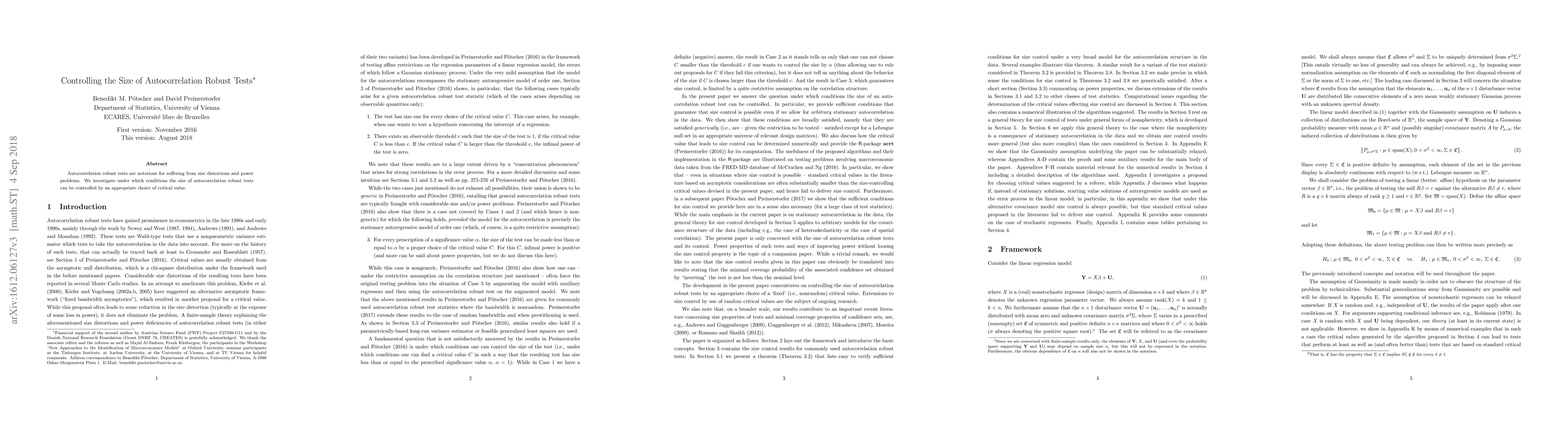 Summary: This paper explores how the size distortions in autocorrelation robust tests can be managed through the selection of an appropriate critical value, aiming to improve both the accuracy and power of these tests.