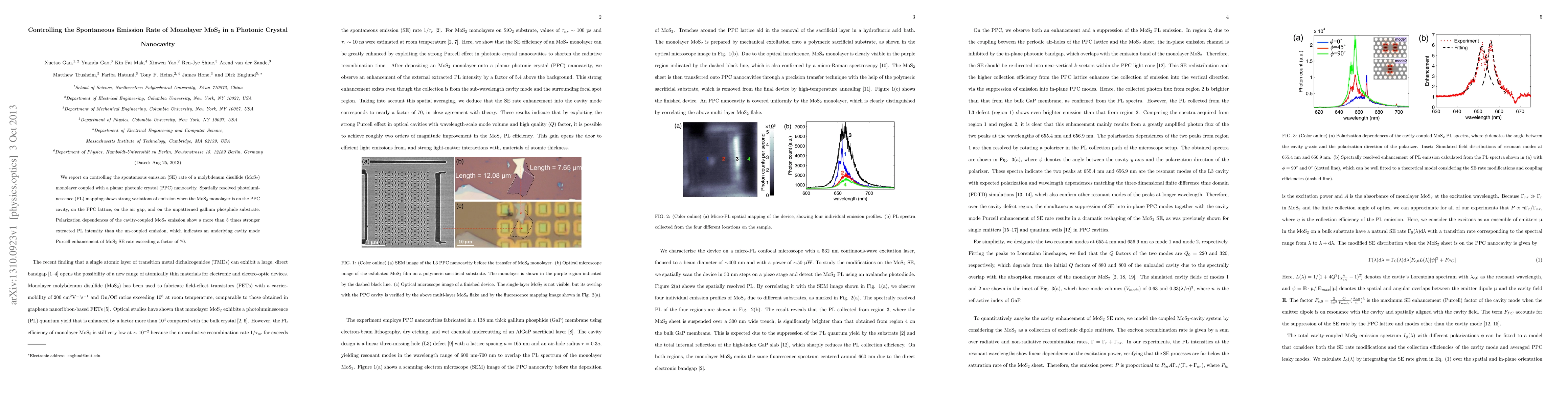 This study demonstrates significant control over the spontaneous emission rate of a monolayer MoS$_2$ by coupling it with a photonic crystal nanocavity, showing enhanced emission intensity and a Purcell factor increase by more than 70-fold. Spatial and polarization analyses reveal strong variations in emission characteristics based on the monolayer's position relative to the nanocavity.