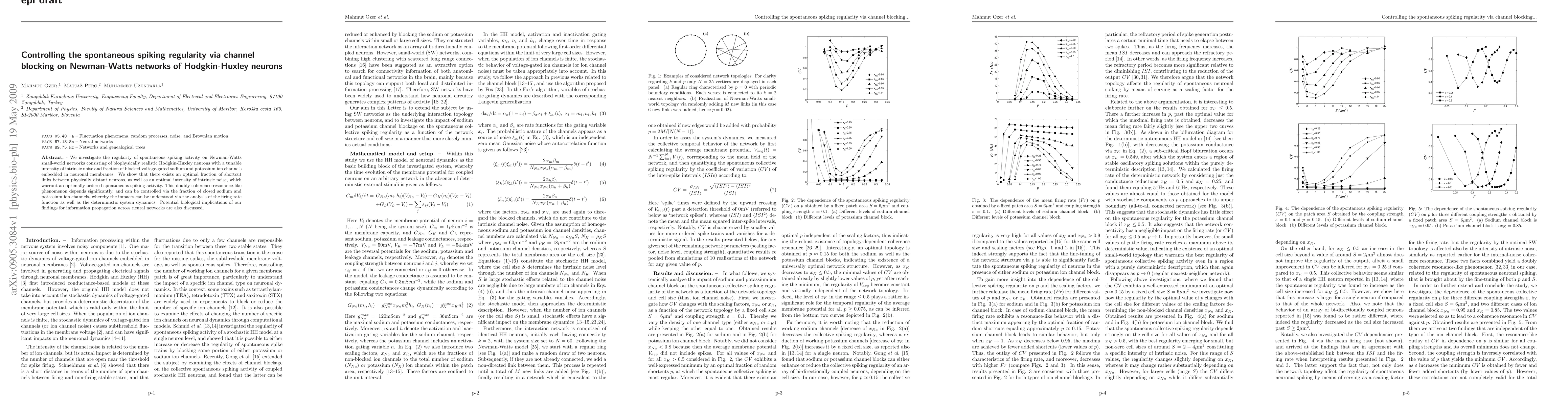 This study explores how controlling the fraction of blocked sodium and potassium channels in Hodgkin-Huxley neurons on Newman-Watts networks can regulate the regularity of spontaneous spiking activity. The research identifies optimal conditions for ordered spiking, suggesting potential biological implications for neural information propagation.