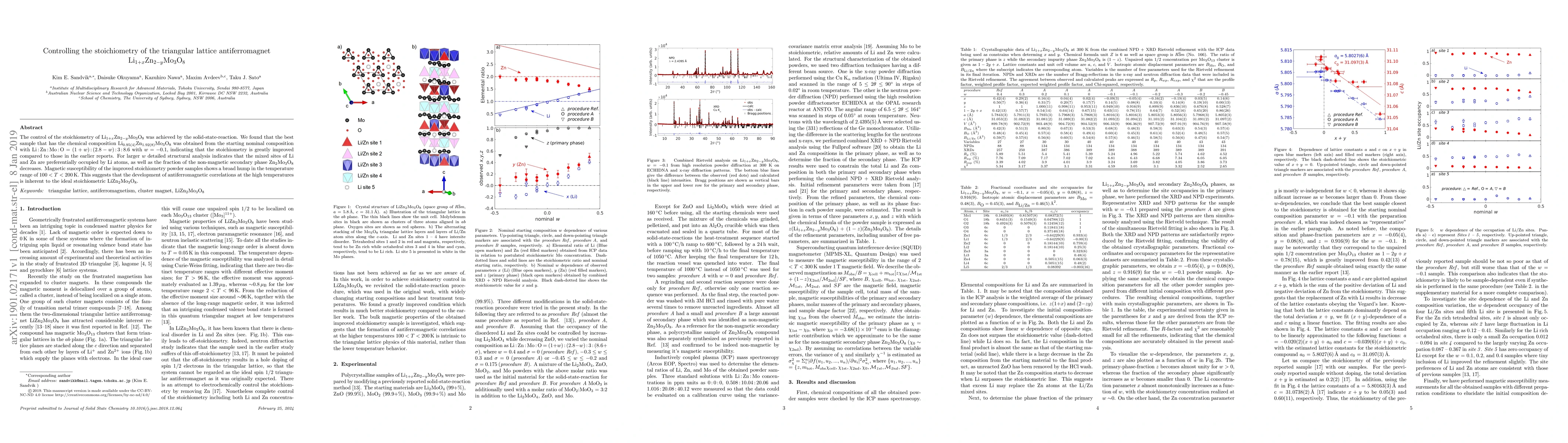 This study successfully controlled the stoichiometry of Li$_{1+x}$Zn$_{2-y}$Mo$_3$O$_8$ through solid-state reactions, achieving the best sample with composition Li$_{0.95(4)}$Zn$_{1.92(8)}$Mo$_3$O$_8$. Enhanced magnetic susceptibility indicates the development of antiferromagnetic correlations in the high-temperature range, suggesting improved stoichiometry leads to inherent antiferromagnetic behavior.