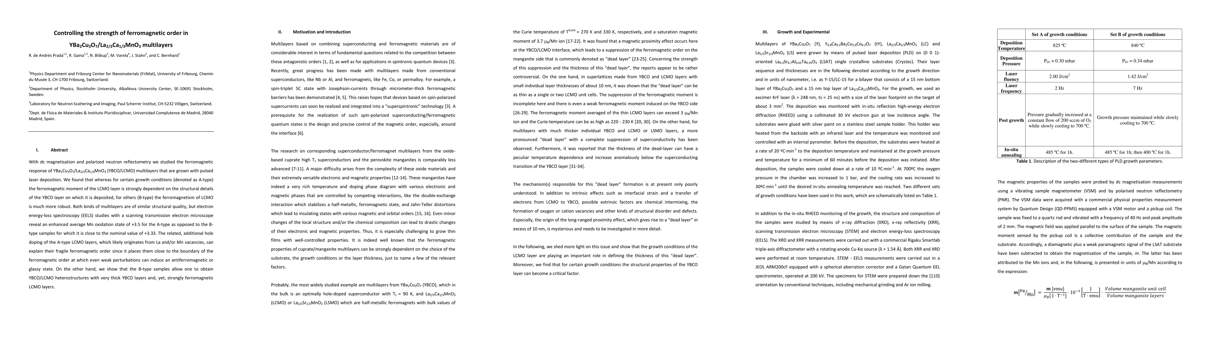 Researchers studied YBa$_2$Cu$_3$O$_7$/La$_{2/3}$Ca$_{1/3}$MnO$_3$ multilayers to control the strength of ferromagnetic order in a way that depends on growth conditions, revealing how structural details and electron doping impact the material's magnetic properties.